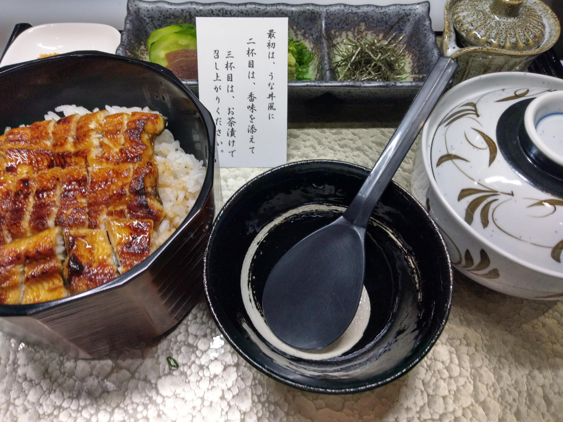 岸根公園旬やのひつまぶし 2020/02/21 ひつまぶし 一度に三種類の食べ方ができて、お得感感じるひつまぶし。 最初は、鰻丼風に・・・ 二杯目は、香味を添えて・・・ 三杯目は、お茶漬けでお召し上がりください。 フードメニュー